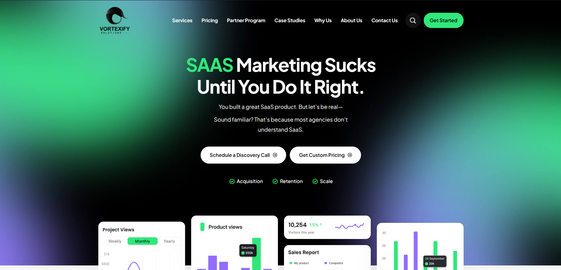 As a WordPress Designer and Content Creator, I had the opportunity to design and develop the website for Vortexify, a cutting-edge SaaS marketing agency. My role extended beyond just web design—I also crafted compelling, conversion-driven content to align with the brand’s mission of scaling SaaS businesses.